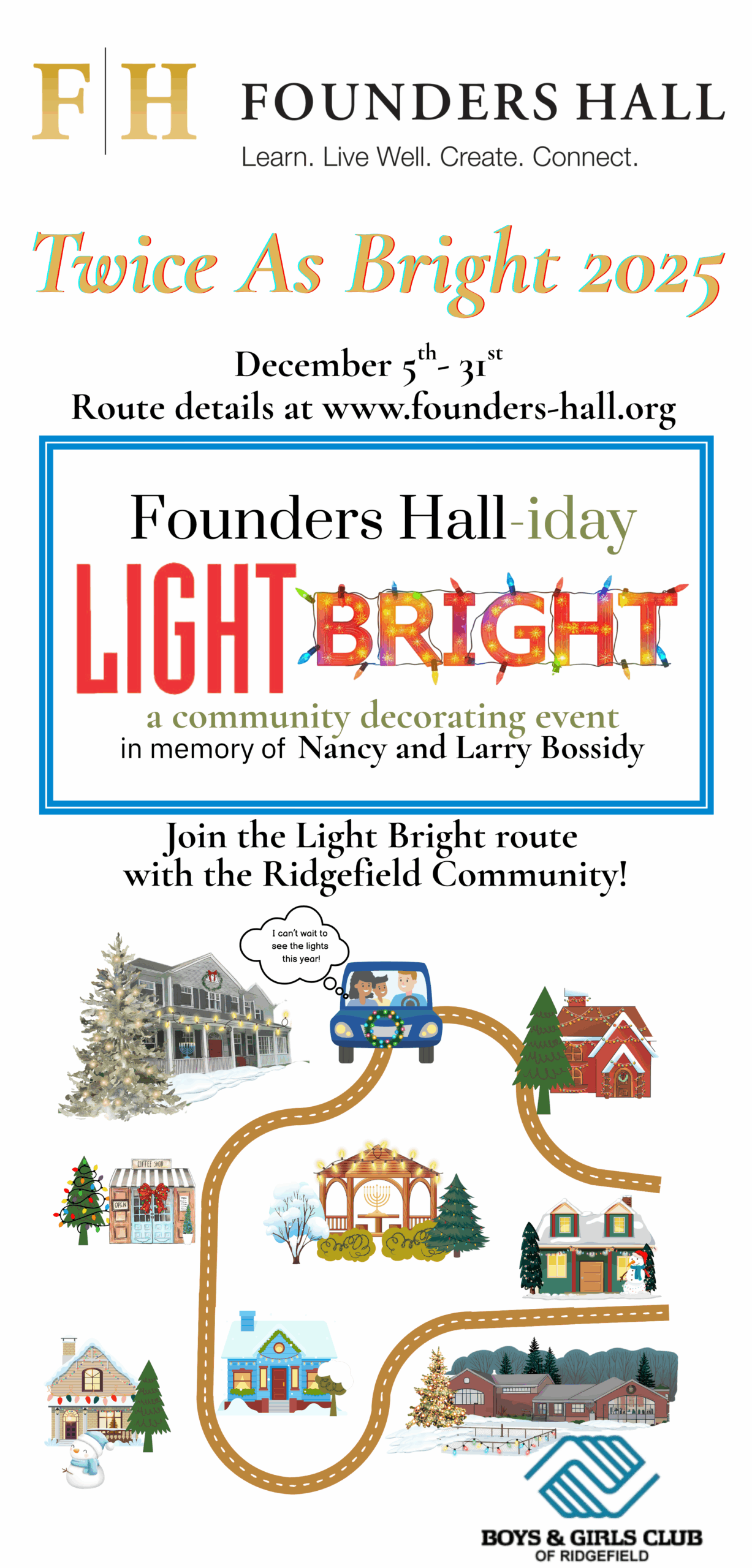 - Founders Hall-iday Light Bright to Shine Twice As Bright in Partnership with Boys & Girls Club of Ridgefield